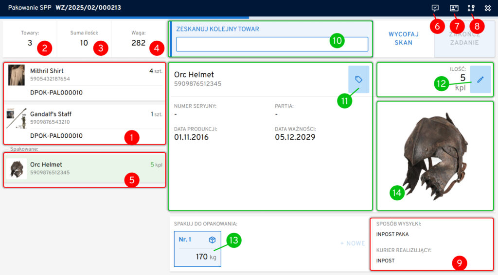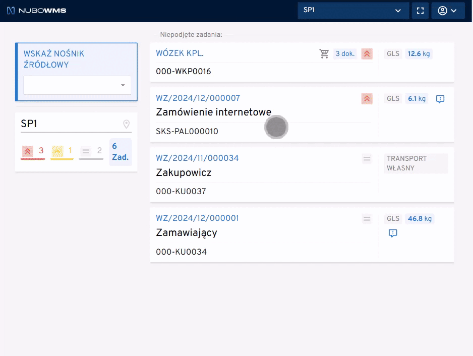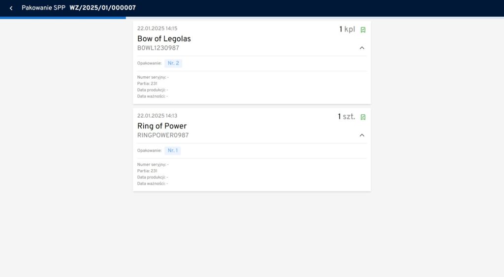 Zadania SPP to zamówienia zrealizowane metodą Single Order Picking with Packing, czyli pojedyncze zamówienia (kompletowane do kuwety lub na paletę), które przechodzą dodatkową kontrolę na stanowisku pakowania.