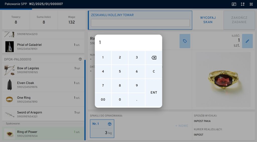 Operator może wejść w szczegóły towaru oraz zmienić ilości towarów naciskając niebieskie przyciski.