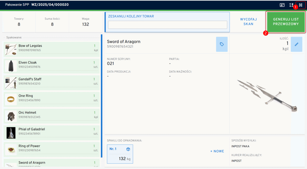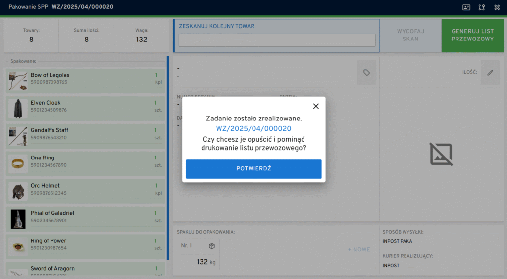 Po jego naciśnięciu operator przechodzi do etapu generowania listu przewozowego. Więcej na ten temat znajdziesz tutaj: LINK