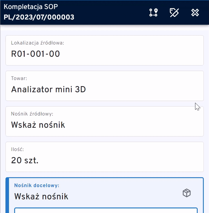 Pracownik może również zmienić przebieg kompletacji ustalony przez system.