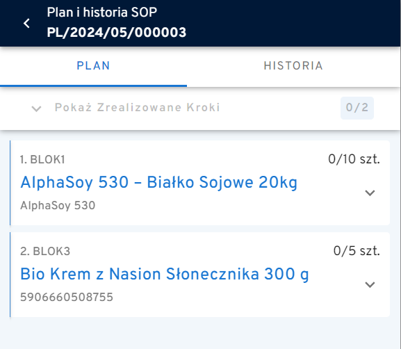 Po rozpoczęciu Picking Listy użytkownik może sprawdzić co znajduje się w planie wydania.