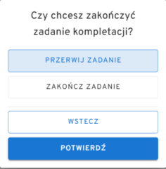 W tym celu należy wybrać z górnego menu ikonę X,  a następnie PRZERWIJ ZADANIE.
