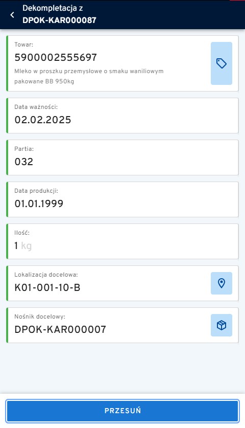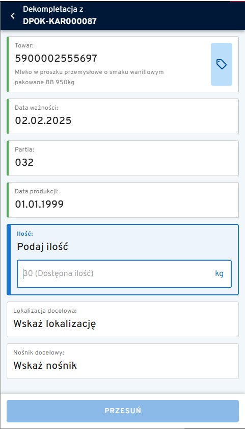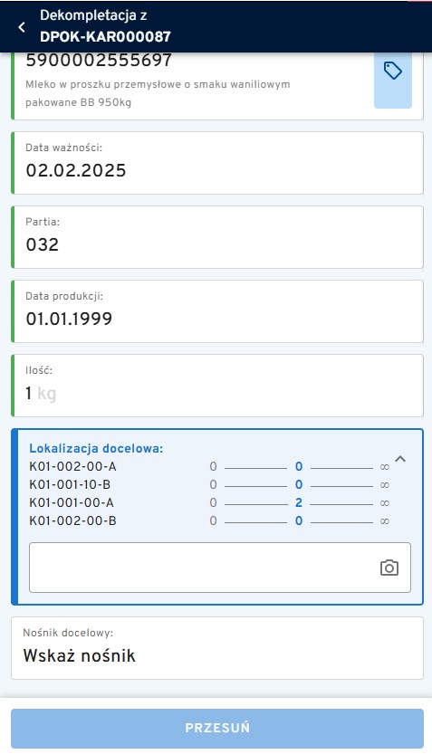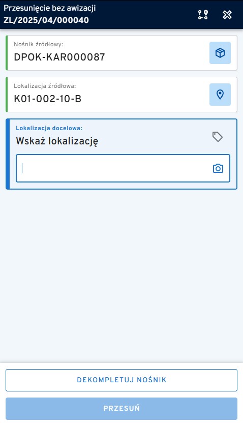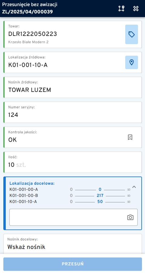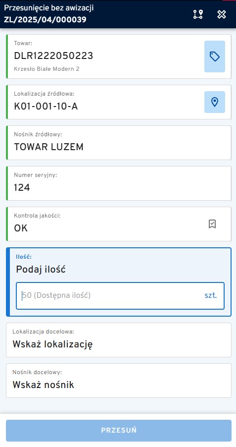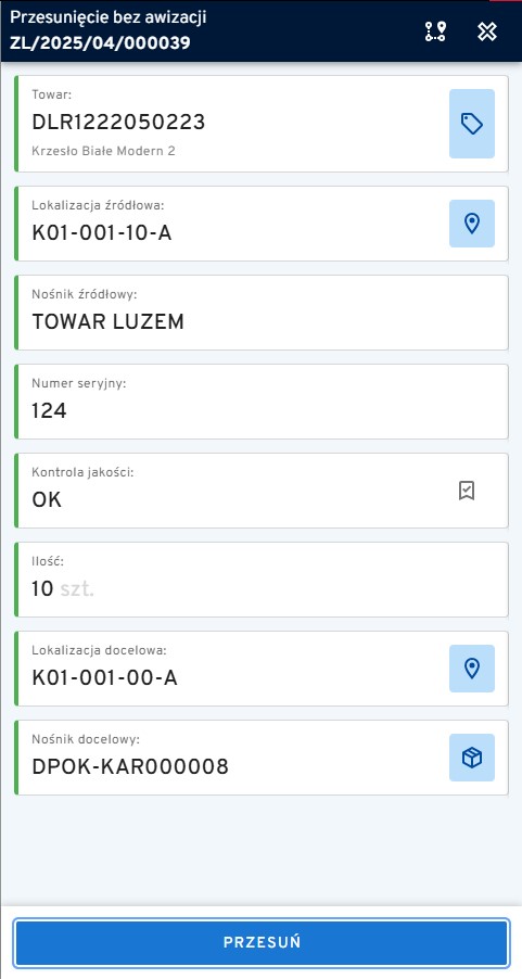 Przesunięcie ADHOC – w obrębie jednego magazynu