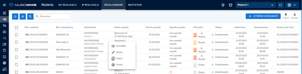 WYDRUK ZREALIZOWANYCH DOKUMENTÓW