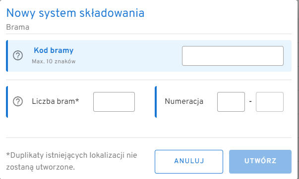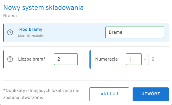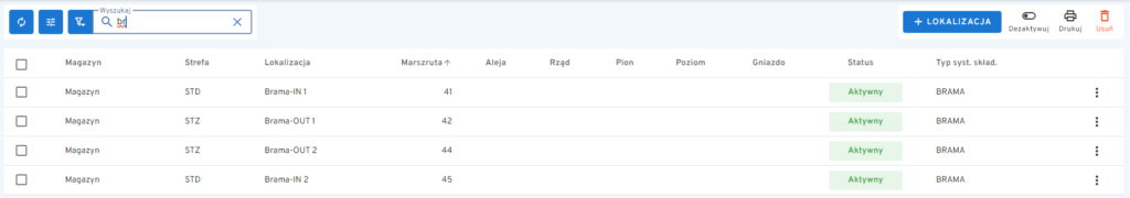 Bramy są automatycznie przypisywane do stref magazynowych.