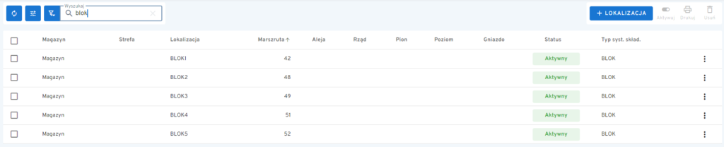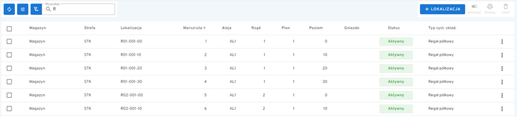 Po wejściu w widok, należy wybrać +LOKALIZACJĘ. Przycisk znajduje się na belce znajdującej się z prawej strony nad tabelą.