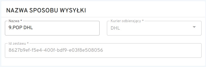 Nazwa sposobu wysyłki – należy wprowadzić nazwę dla konfigurowanego zestawu. Pole KURIER ODBIERAJĄCY uzupełnia się automatycznie.