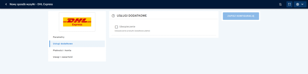 W tej zakładce można aktywować wybrane usługi dodatkowe, które będą wykorzystywane podczas wysyłki towarów do klientów.