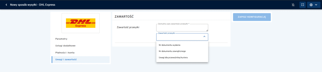 W tej zakładce możemy dodać ogólny opis zawartości przesyłek.