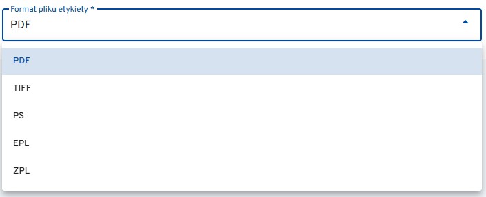 Domyślnie wprowadzone wartości to ETYKIETA oraz PDF.