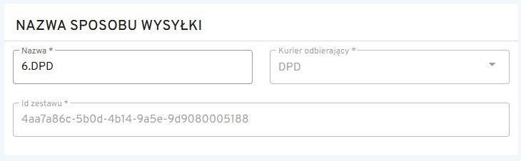 Nazwa sposobu wysyłki – należy wprowadzić nazwę dla konfigurowanego zestawu. Pole KURIER ODBIERAJĄCY uzupełnia się automatycznie.