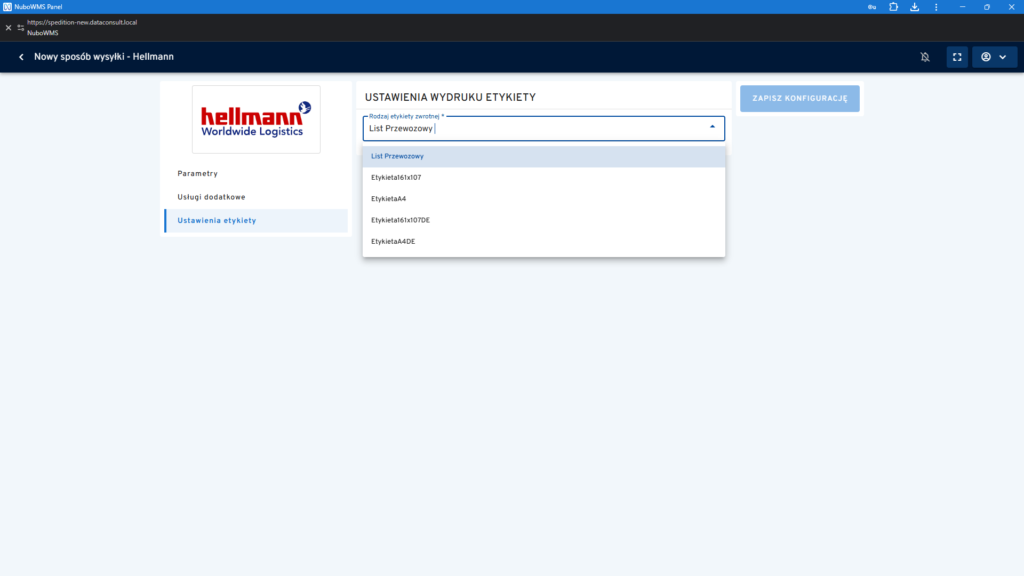 W przypadku dokumentów wydań z określonym sposobem wysyłki, które są importowane z systemu zewnętrznego, ważne jest aby nazwa sposobu wysyłki na takim dokumencie była taka sama, jak zdefiniowana w NuboWMS.