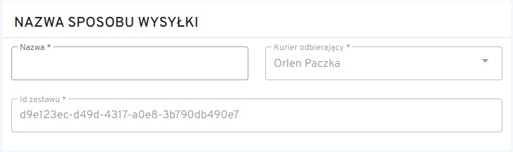 Nazwa sposobu wysyłki – należy wprowadzić nazwę dla konfigurowanego zestawu. Pole KURIER ODBIERAJĄCY uzupełnia się automatycznie.