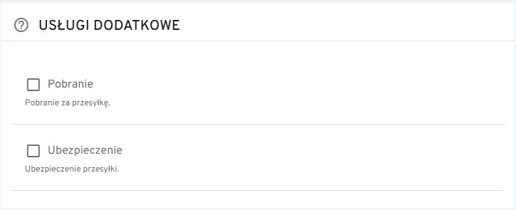 W tej zakładce można aktywować wybrane usługi dodatkowe, które będą wykorzystywane podczas wysyłki towarów do klientów.