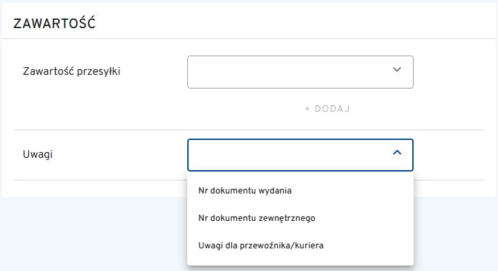 1. WŁĄCZONA – wartość edytowalna podczas tworzenia dokumentu wydania, która wymaga wprowadzenia dodatkowych informacji. Wartość niedostępna do edycji podczas generowania listu przewozowego w terminalu.