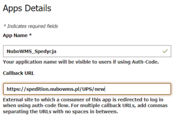 2. Adres URL przekierowania integracji do NuboWMS. (Callback URL)