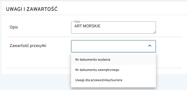 W tej zakładce można wprowadzić informacje, które przekazywane są do firmy kurierskiej, np. opis zawartości paczki oraz polach referencyjnych, które pomogą zidentyfikować paczkę, np. nazwa firmy, adres strony internetowej etc.