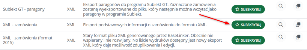 Z dostępnych opcji wybieramy PLIK BASELINKER XML.