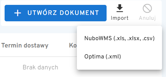 Import dokumentów w programie NuboWMS odbywa się w aplikacji panelowej.