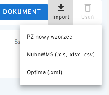 Do systemu można zaimportować plik ZD z ERP Optima w formacie .xml.