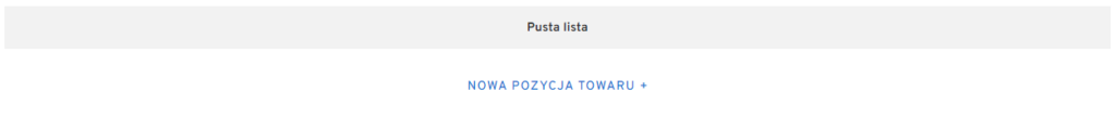 W sekcji PUSTA LISTA należy dodać pozycję dokumentu. W tym celu, korzystamy z przycisku NOWA POZYCJA TOWARU+.