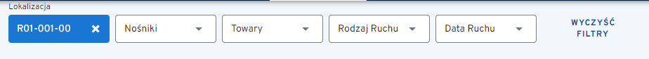 Chcąc zawęzić raport do konkretnego nośnika, towaru, rodzaju ruchu lub daty należy wykorzystać filtry i ponownie nacisnąć przycisk GENERUJ RAPORT.