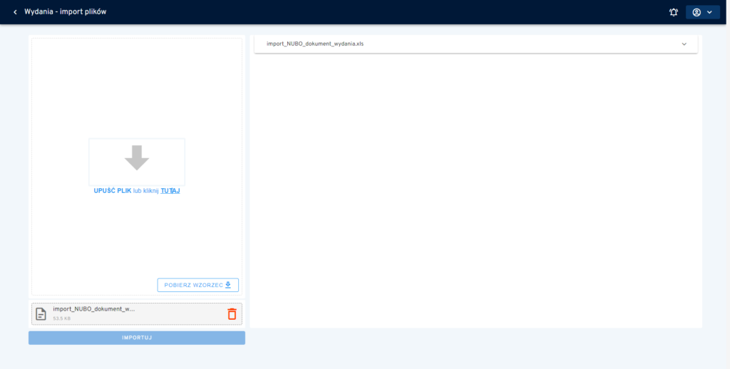 Po uzupełnieniu i zapisaniu pliku wzorcowego, plik może zostać wgrany do systemu.