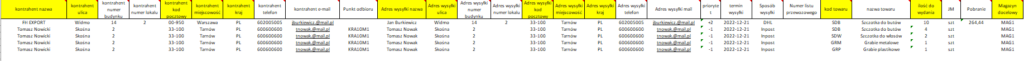 Kolumny obligatoryjne do uzupełnienia zaznaczone są kolorem żółtym: