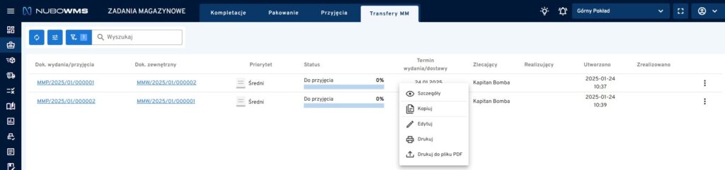 • Anulowany – proces przesunięcia międzymagazynowego został anulowany przez administratora lub kierownika.